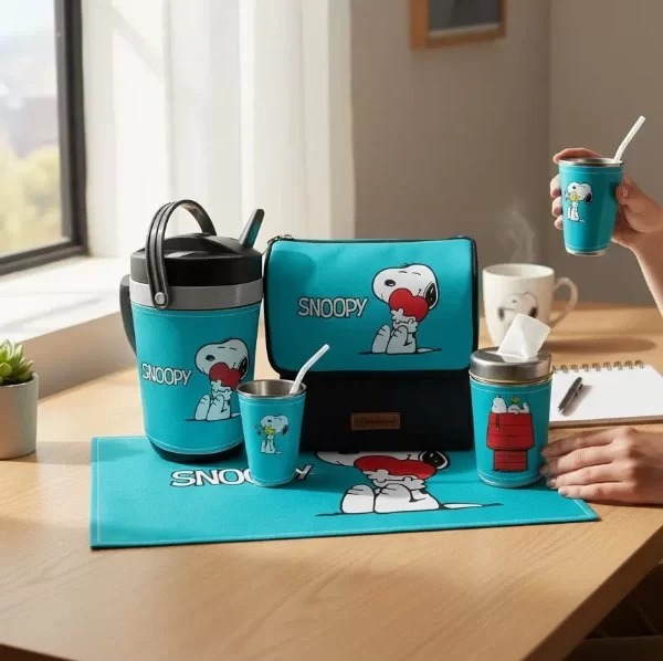 KIT TERE COMPLETO FULL CON BOLSO Y BSE APOYO SNOOPY CELESTE