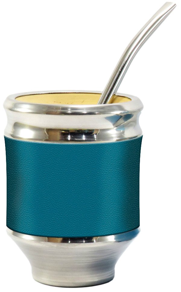 MATE + BOMBILLA ECOCUERO AZUL-VERDE