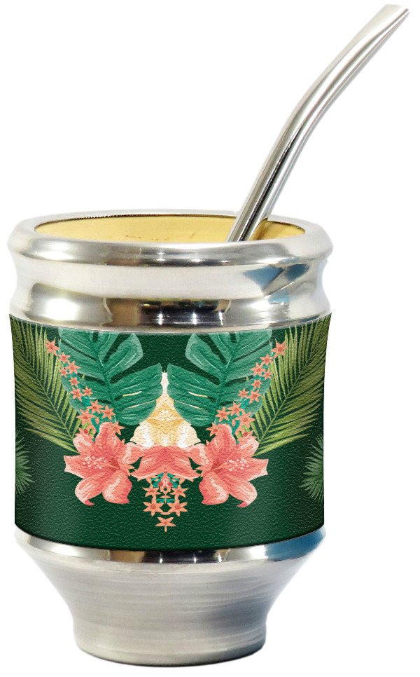 MATE + BOMBILLA ECOCUERO HOJAS FONDO VERDE